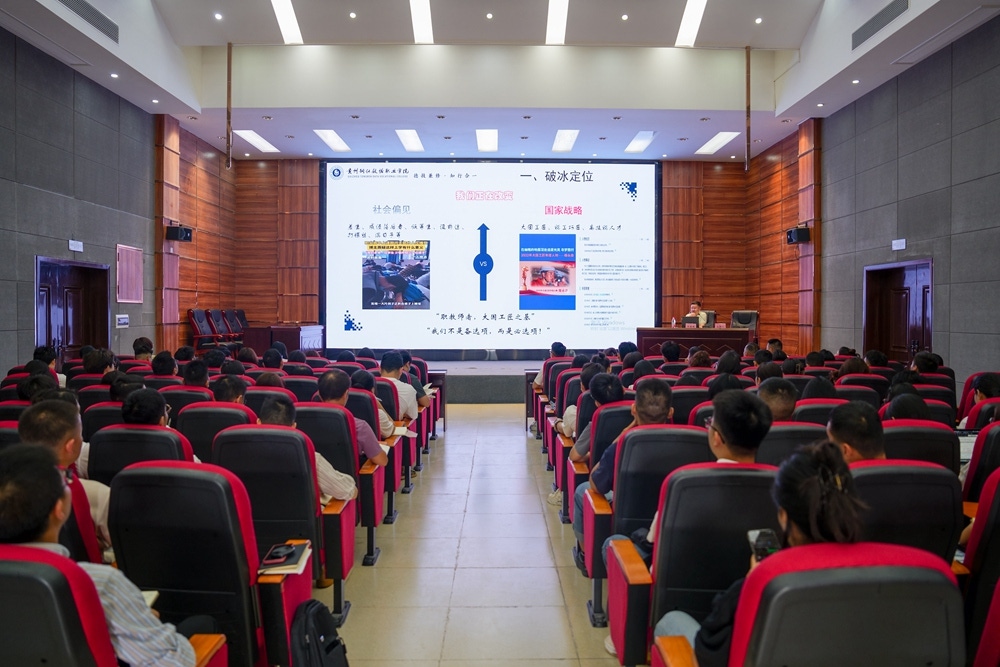 自信之源:筑牢职业教育发展的坚实根基为了让教师们真正建立起对职业教育的自信,他从“四个关键”深入分析了职业教育自信的来源。一是政策赋能。国家出台大量技能人才培养政策,为职业教育的发展提供了坚实的制度支撑;二是产业刚需。大数据产业的蓬勃发展,产生了大量的技能人才需求,为职业教育毕业生提供了广阔的就业空间;三是管理优势。民办教育拥有的灵活机制,能够快速适应市场变化,及时调整教学内容和模式,这是民办职业院校的独特优势;四是文化根基。学校自身的校园文化,更是凝聚教师力量、推动学校发展的精神纽带。这四个方面形成的双轮驱动之势,让教师们深刻理解了职业教育自信并非空中楼阁,而是有坚实基础的,从而增强了大家从事职业教育工作的自豪感和自信心。