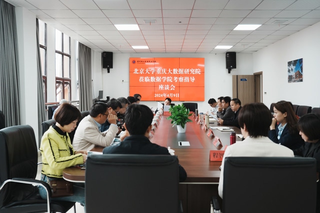 4月9日上午,北京大学重庆大数据研究院副院长王涛一行莅临我校考察调研并座谈交流,探讨深化合作事宜。市卫生健康局副局长王春和市大数据局等相关部门领导陪同调研;学校党总支书记肖洪涛、校长黄士安等在校班子成员陪同并出席座谈会。
