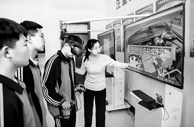 数字化升级助力职业教育高质量发展,在河北省兴隆县职教中心,学生在进行汽车维修VR实训。新华社发