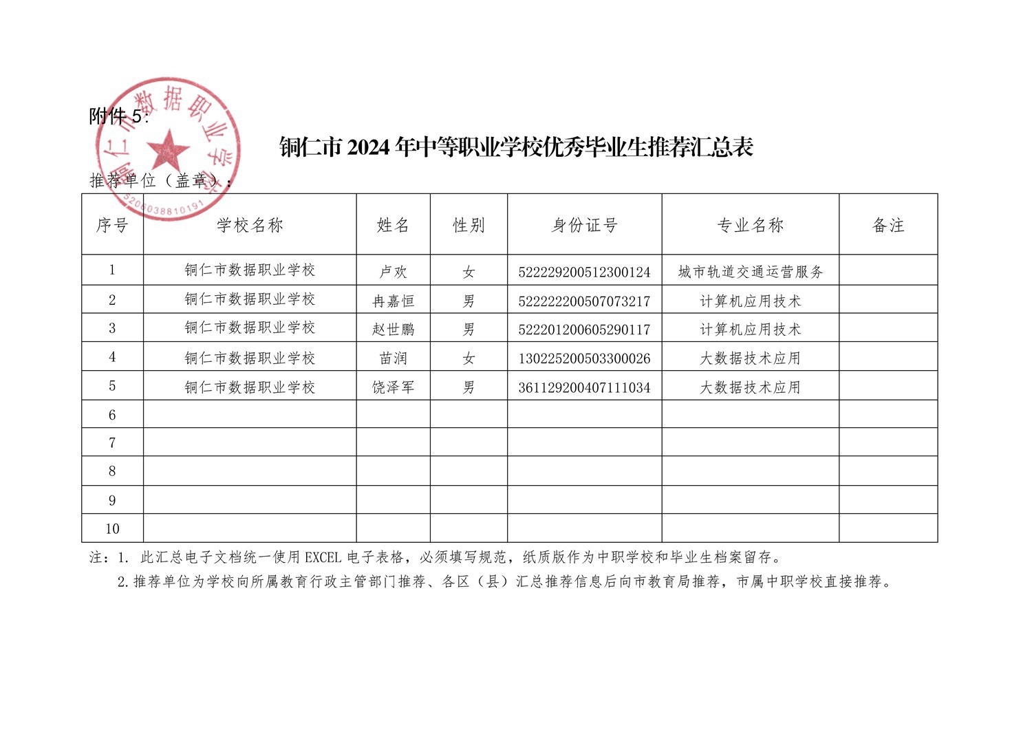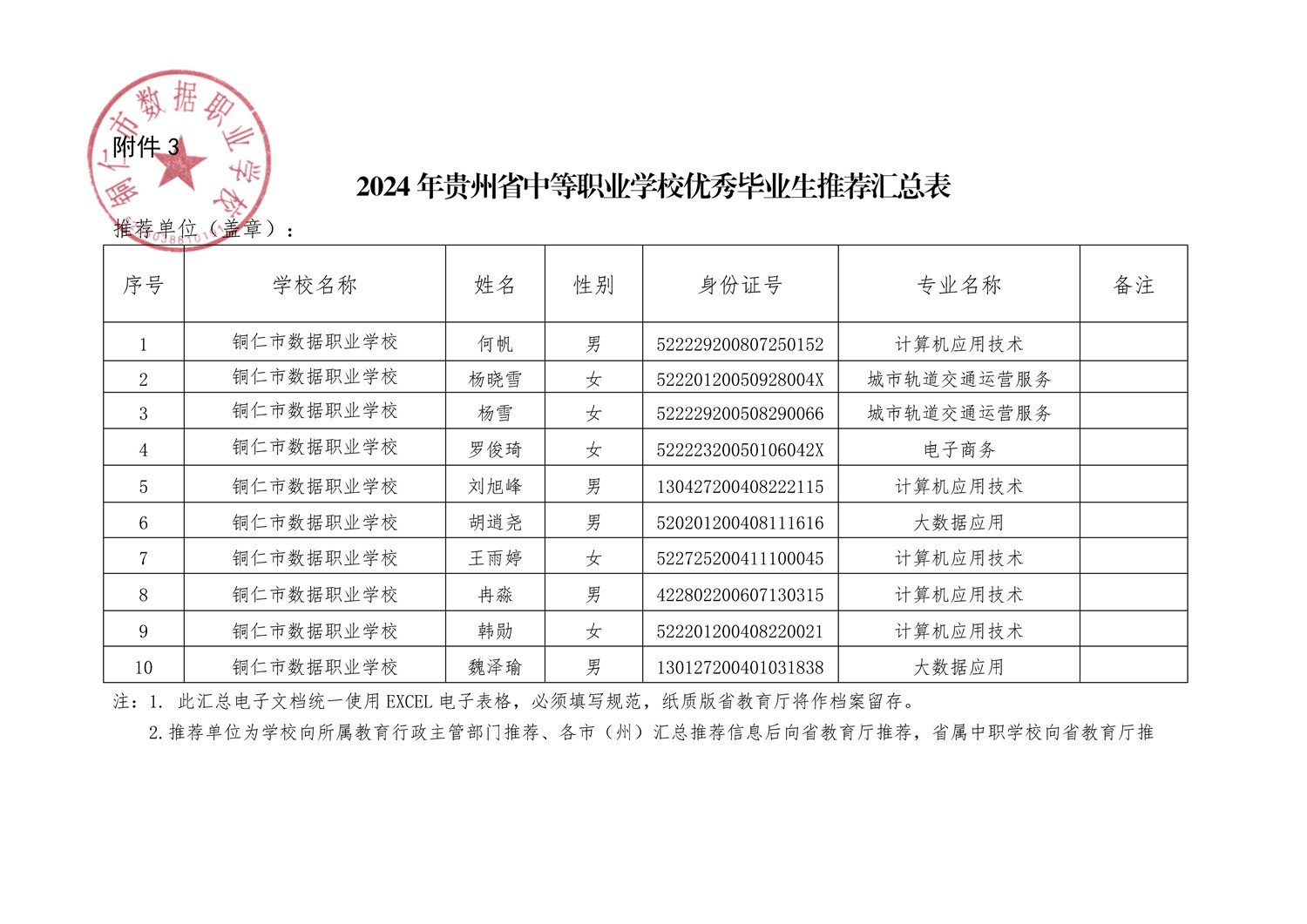 铜仁市数据职业学校2021级优秀毕业生评选推荐名单公示