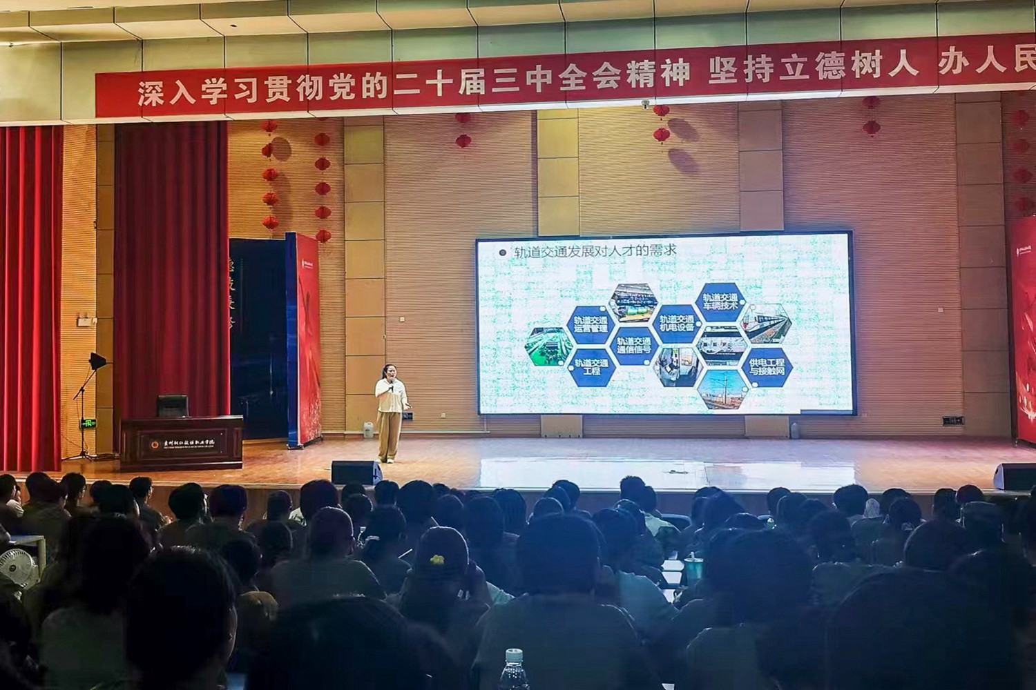为了让更多学生了解城市轨道交通运营管理专业的特色与优势,激发学生的学习兴趣和专业热情,2024年9月9日,我院在学校大礼堂开展城市轨道交通运营管理专业2024级新生宣讲会。