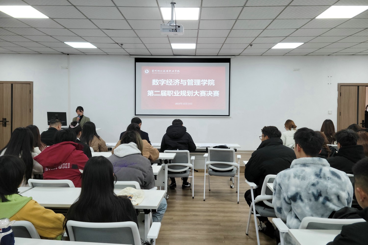 就业是最基本的民生。为深入贯彻党中央、国务院和贵州省委、省政府关于高校毕业生就业工作的决策部署,进一步加强高校生涯教育和就业指导,提升在校大学生生涯规划意识,引导大学生提前规划职业生涯,促进高校毕业生实现高质量充分就业,12月15日,数字经济与管理学院在图书馆一楼会议室成功举办第二届大学生职业规划大赛院级决赛。此次大赛以“筑梦青春志在四方 规划启航职引未来”为主题,旨在通过比赛的形式激发学生职业规划热情,为他们的未来职业发展奠定坚实基础。