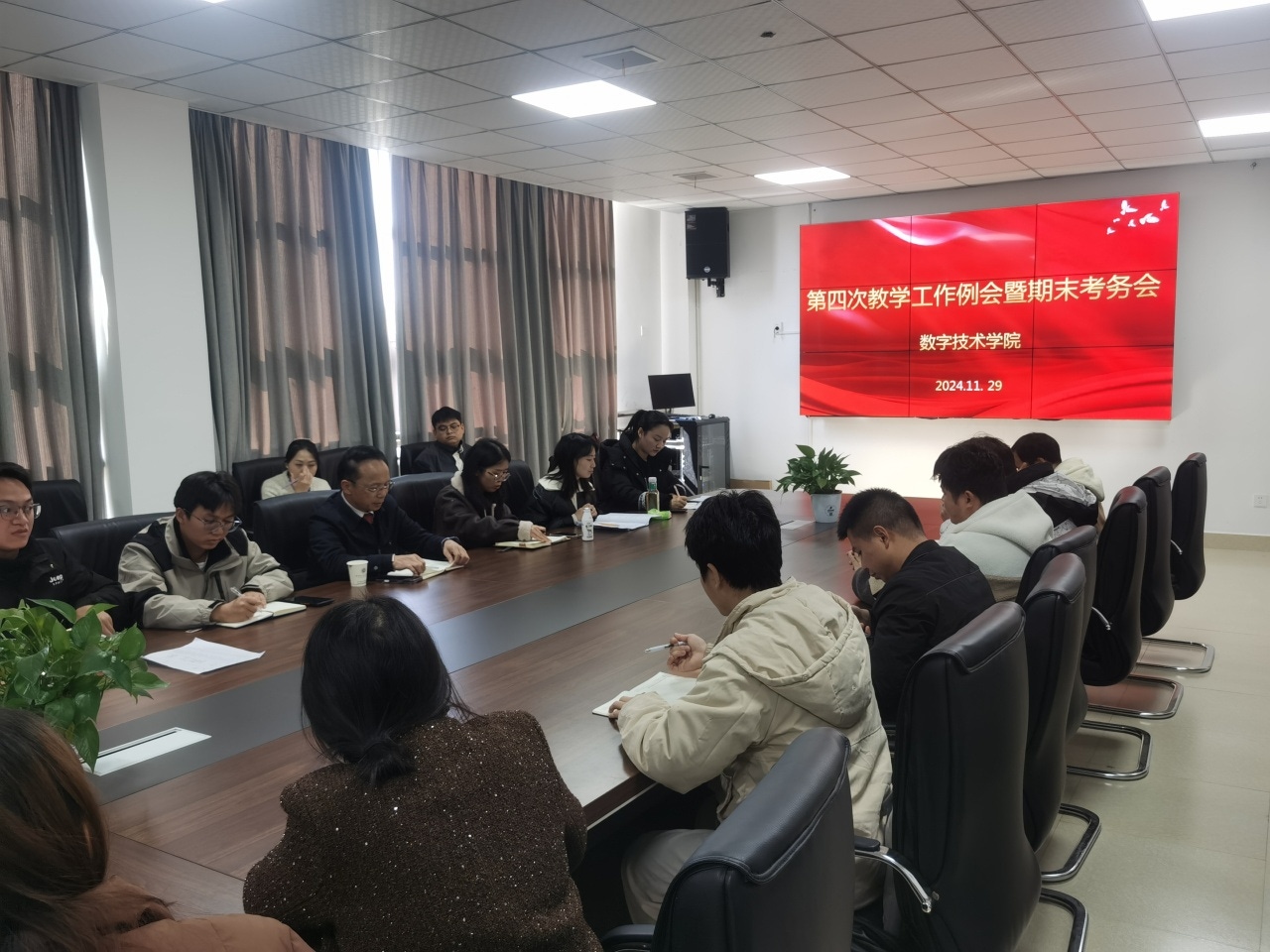 2024年11月29日,数字技术学院在行政楼三楼会议室召开了2024-2025学年第一学期第四次教学工作例会暨期末考务会。会议由院长魏斯民主持,全体教师参加。此次会议重点讨论了期末考务与教学管理工作。